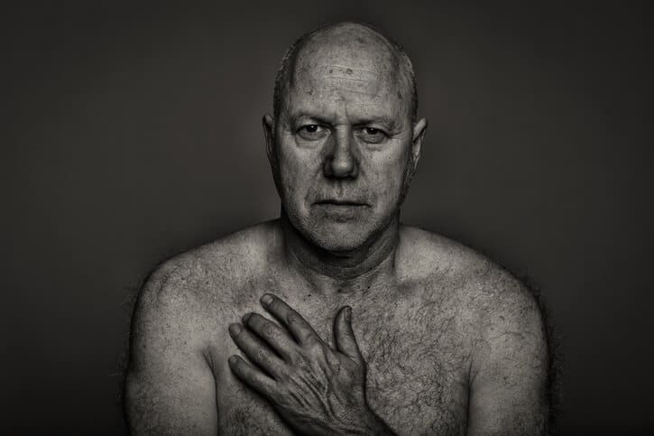 I gradually became more selective and started approaching people who looked more interesting to me – people whose face and body tell a story. I capture around 50 photos of each man and use a selection process in order to choose the image which best represents his personality. While some people are very comfortable posing without their top, others feel this is completely outside their comfort zone and a few view it as a therapeutic experience.