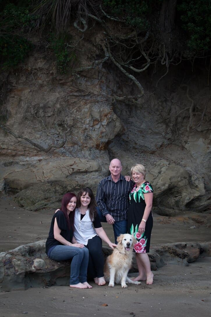 Family portrait at Castor Bay beach